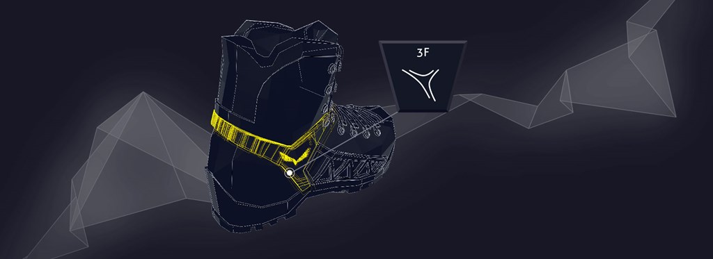 Ochranná známka SALEWA 3F System spája priehlavkovú časť topánky s podrážkou a pätou, čím zaisťuje flexibilitu, oporu a správne uchytenie tam, kde je to potrebné.